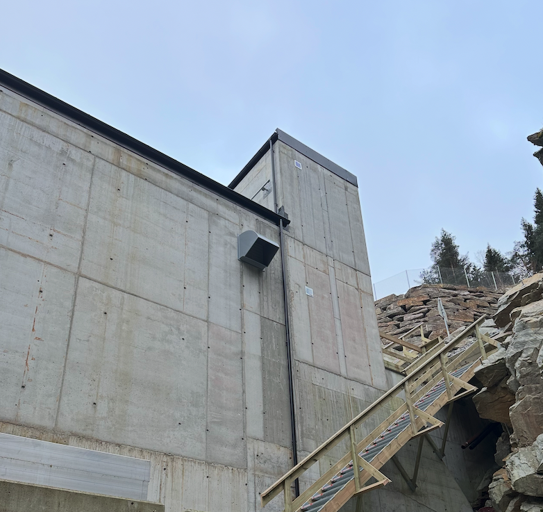 Til kraftverket har vi levert et komplett luftinntak med rist og stengespjeld, samt en BRUVIK BK 50 vifte med selvlukkende stengespjeld og stormhatt. Disse komponentene er utviklet for å tåle utfordrende værforhold og sikre optimal lufttilførsel til anlegget.